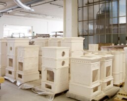 The first productions are attributed to the ceramic factory Reasso, an old craftsman’s dynasty, established for centuries in the heart of S. Rocco between the alleys B. De Rossi and Franklin. But it is the 19th century which marks the true triumph of the classic Castellamonte stove, which is embellished with elaborate decorations, is colored with lively glazures and becomes a precious decorative object.
