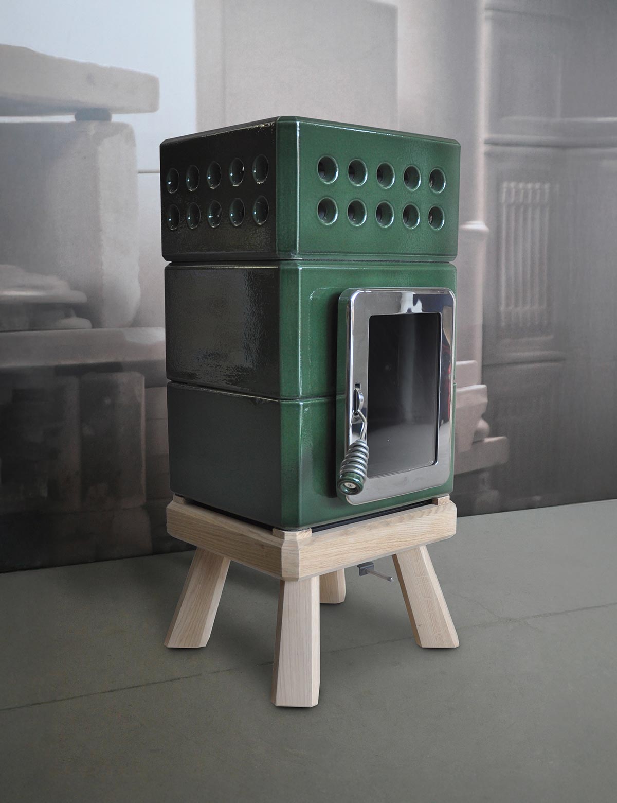 Equipped with a ‘Gran Fuoco’ door and wooden base.