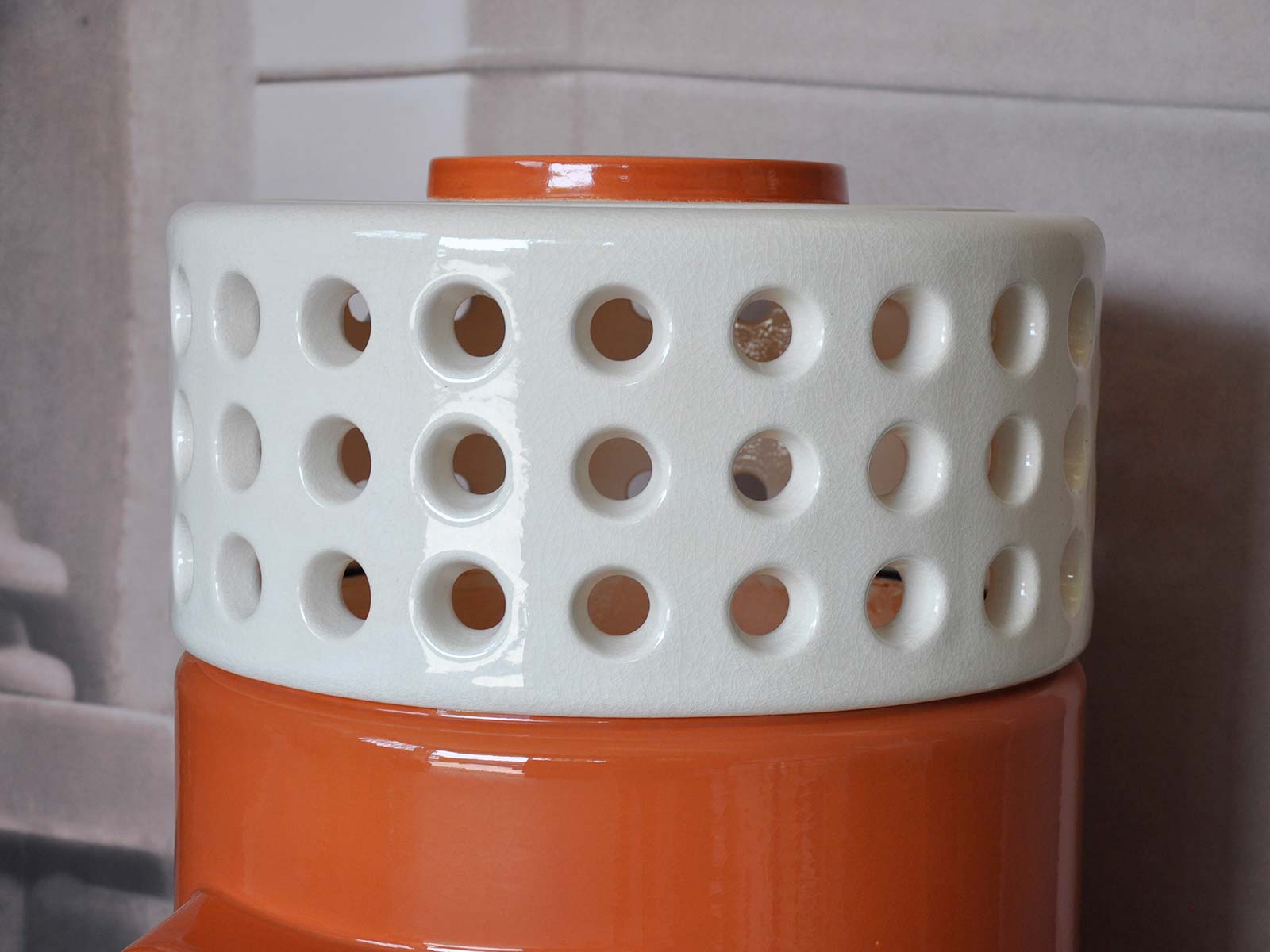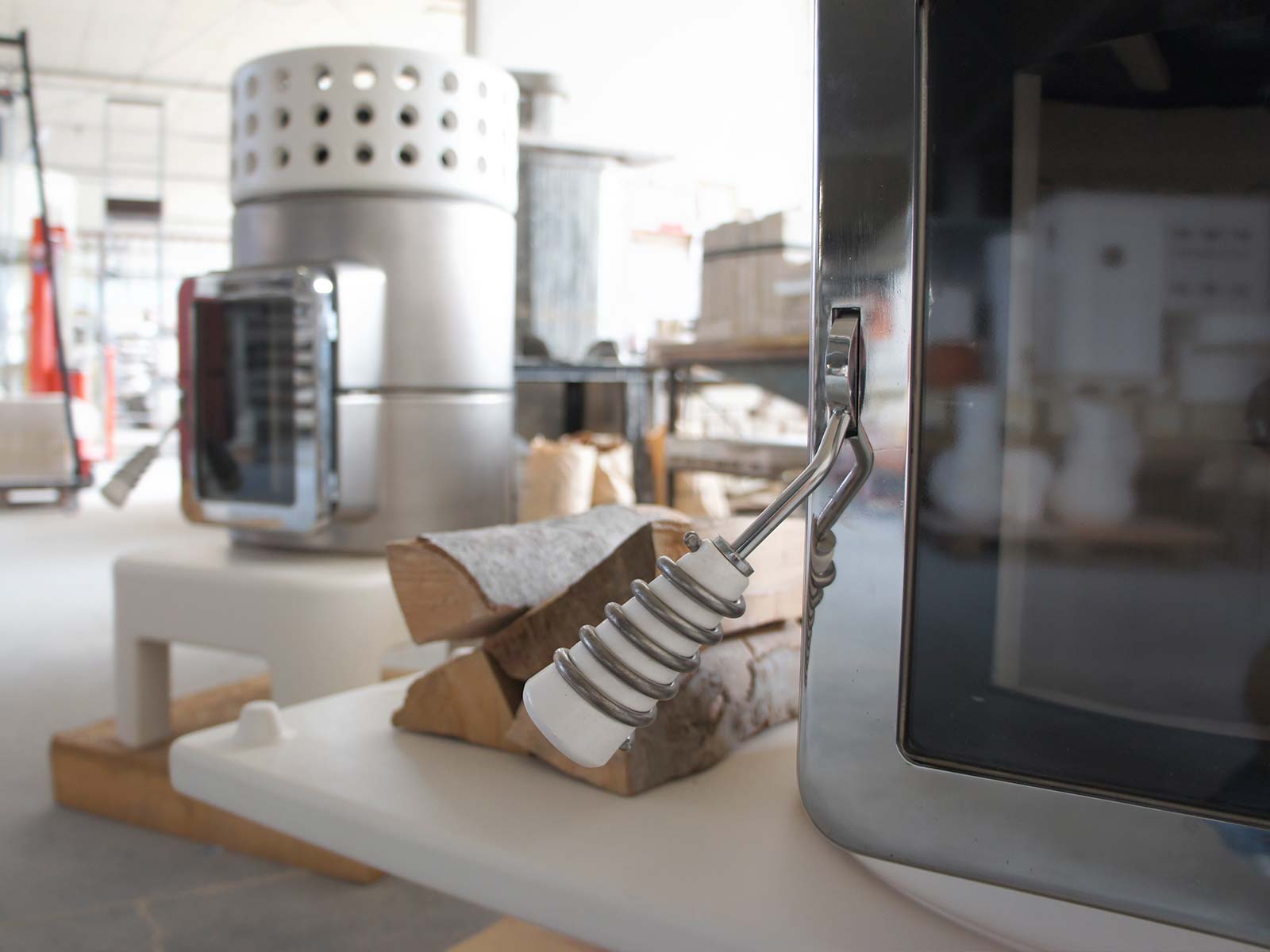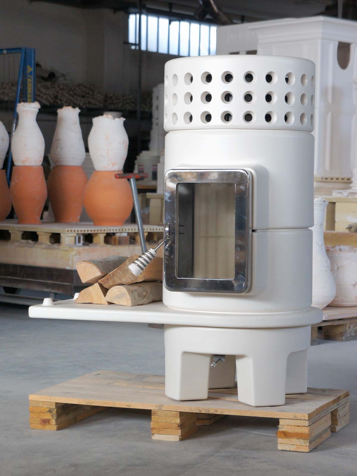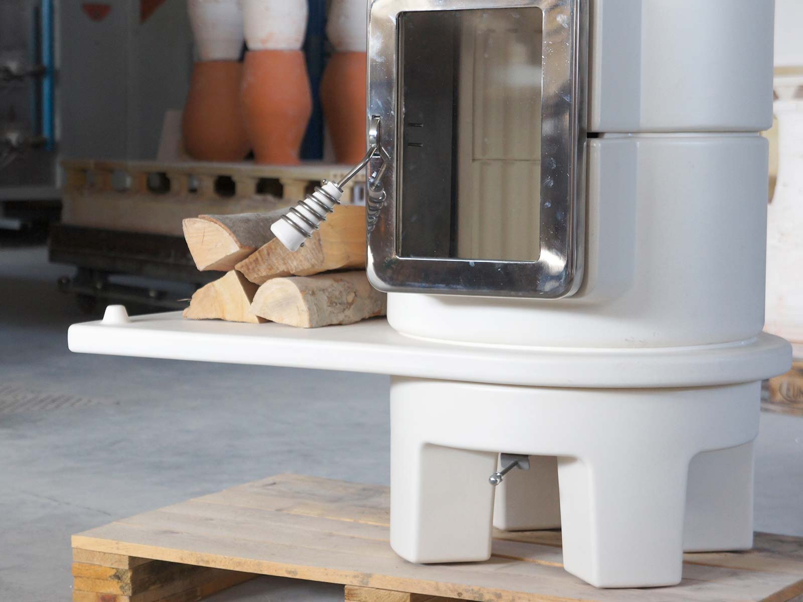 Equipped with a ‘Gran Fuoco’ door and a ceramic base protruding on the side.