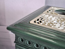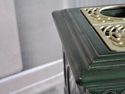 Voluta is a classic stove, rectangular in shape, that can be inserted in any environment. It is inspired by periods of great decorative impact, such as Liberty or Decò. It is equipped with a ‘Gran Fuoco’ door and a large combustion chamber for greater performance and autonomy.