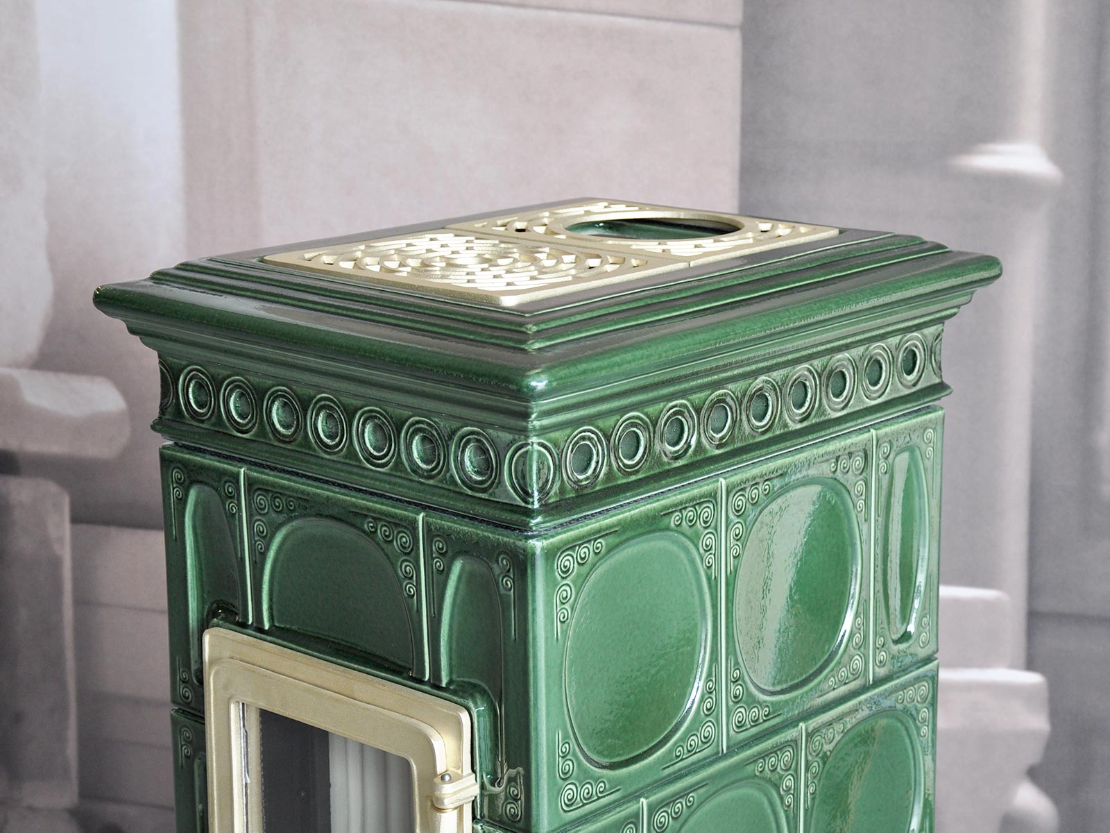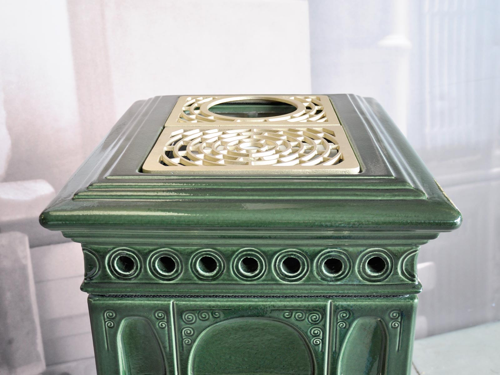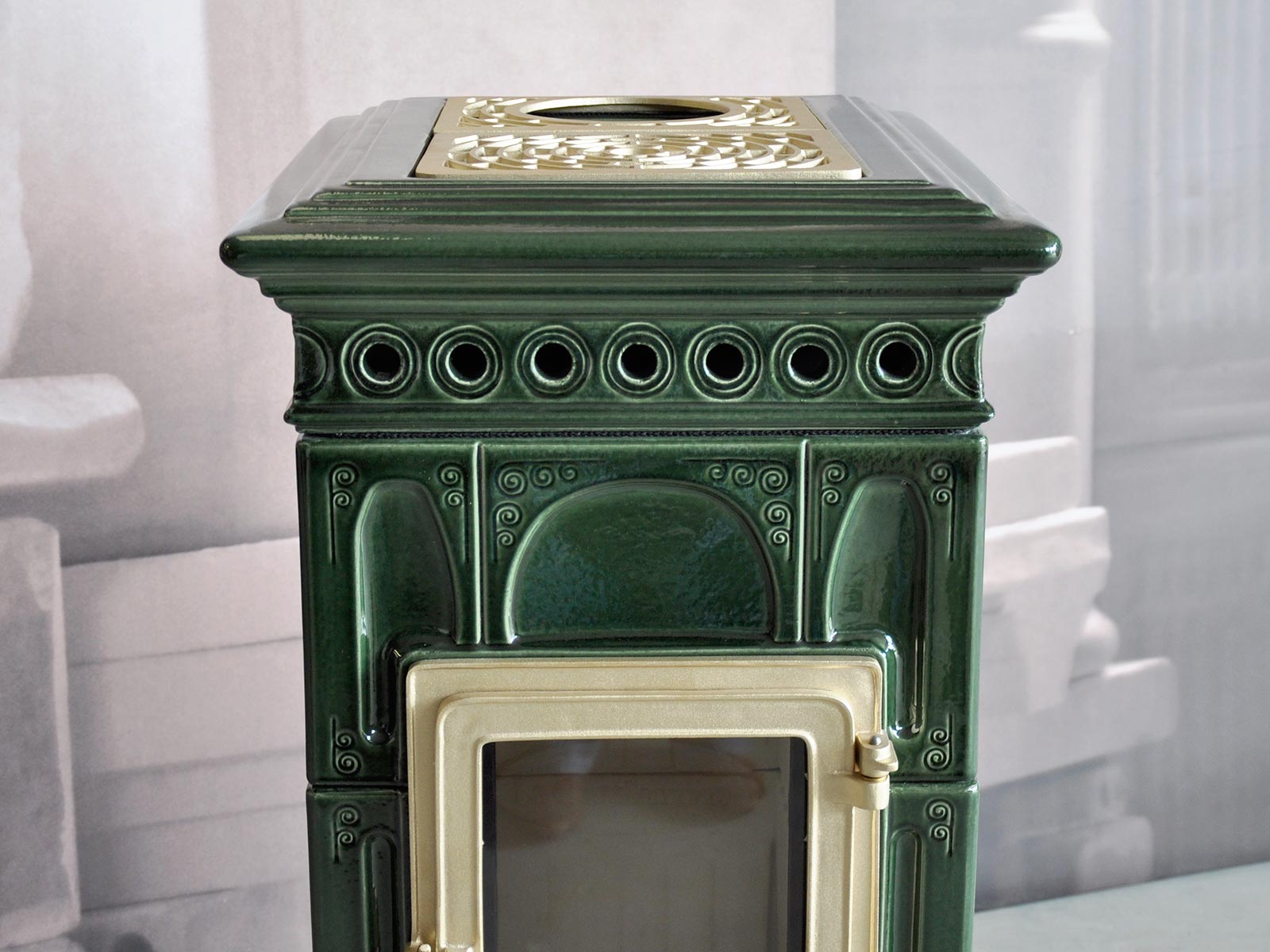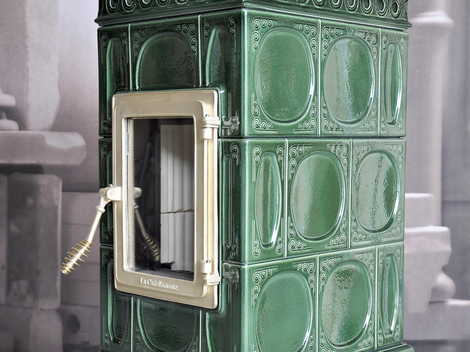 Voluta is a classic stove, rectangular in shape, that can be inserted in any environment. It is inspired by periods of great decorative impact, such as Liberty or Decò. It is equipped with a ‘Gran Fuoco’ door and a large combustion chamber for greater performance and autonomy.