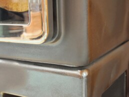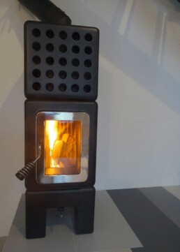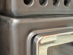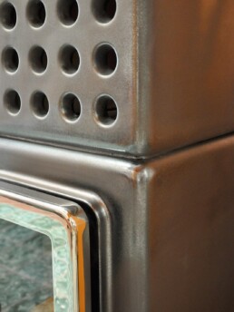 Le linee semplici la rendono adatta ad un ambiente moderno. Dotata di porta ‘Gran Fuoco’ e base di ceramica. Disponibile in 2 misure ed anche in versione termostufa (ThermoStack).