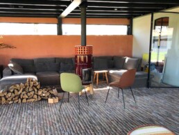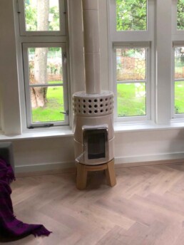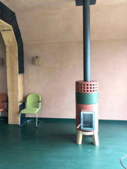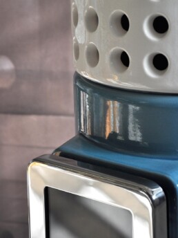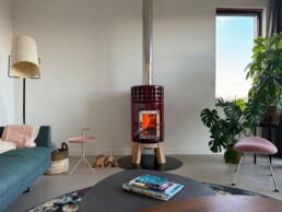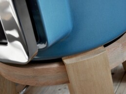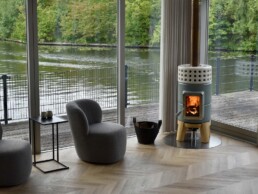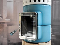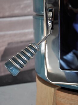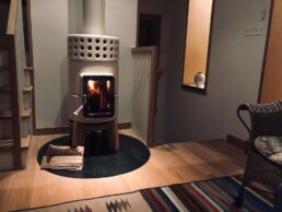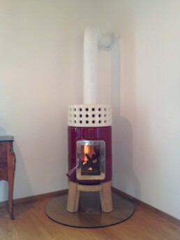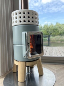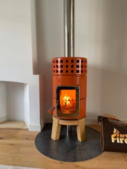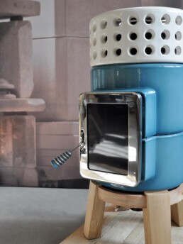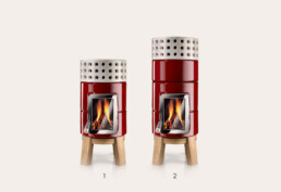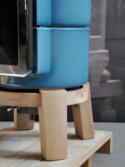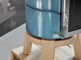 Dotata di porta ‘Gran Fuoco’ e base in legno di rovere. Disponibile in 2 misure.